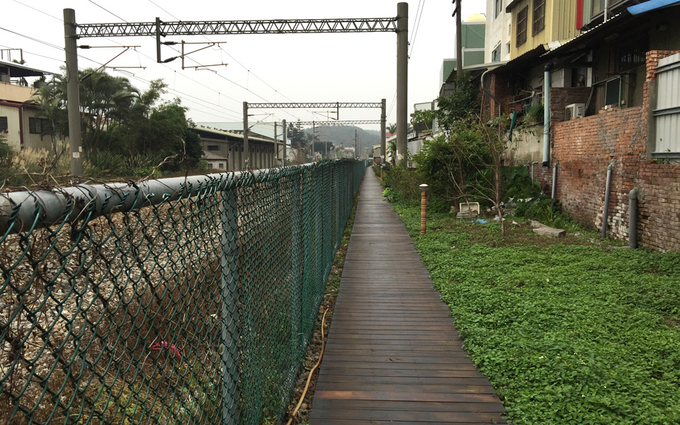 車站旁邊有一條木頭棧道,延著旁邊的住戶鋪排著。
