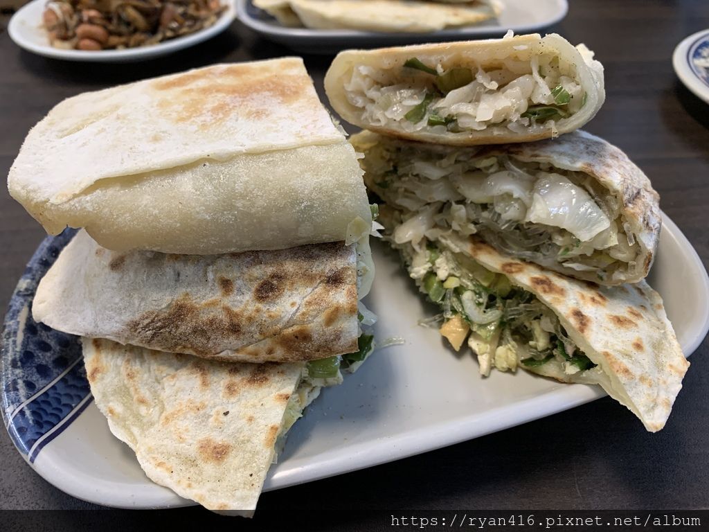 盒子是以疊疊樂的方式上餐桌,由上而下分別為蘿蔔絲捲、高麗菜盒、韭菜盒子。