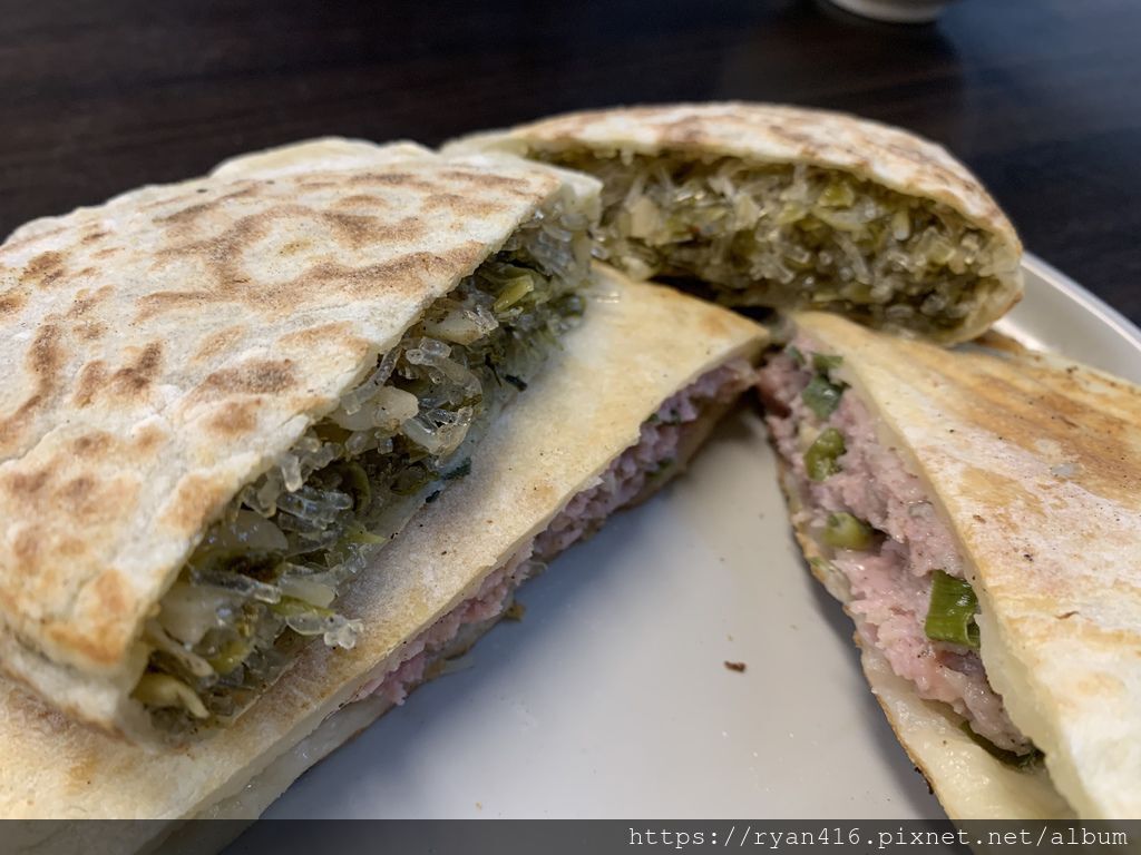 這兩份分別是酸菜盒跟豬肉餡餅。酸菜盒的用量相當實在,豬肉餡餅的肉則是很扎實。